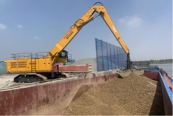 該設(shè)備選用電動(dòng)作業(yè)安全節(jié)能,可比內(nèi)燃機(jī)驅(qū)動(dòng)節(jié)省 60%的能耗;可快速更換不同用途的液壓抓斗,實(shí)現(xiàn)了一機(jī)多用功能??傮w具有以下特點(diǎn):